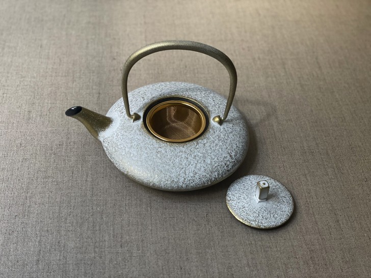 Made by artisans in Morioka Town, Iwate Prefecture, these teapots are made entirely from traditional cast iron, called Nanbu tekki. They have an enamel interior and contain a stainless steel mesh filter. The black teapot has been enameled with tannin for its anti-rust effects and to achieve a unique density of black. The champagne-colored teapot will gradually turn into a golden color as the white enamel will peel off over time..