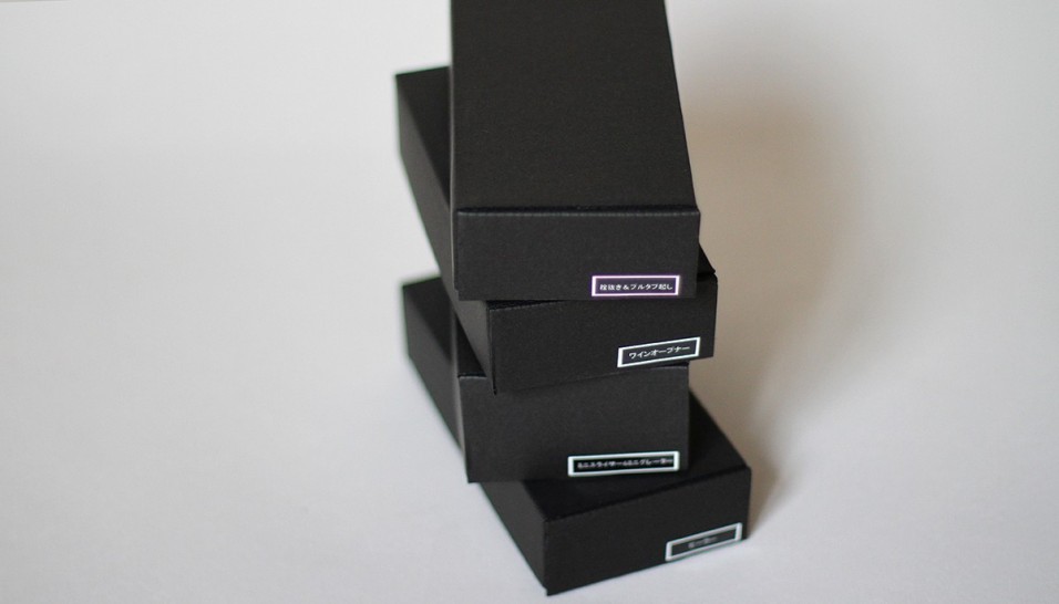 The Goguro bottle opener is made of stainless steel and comes in a black paper box.